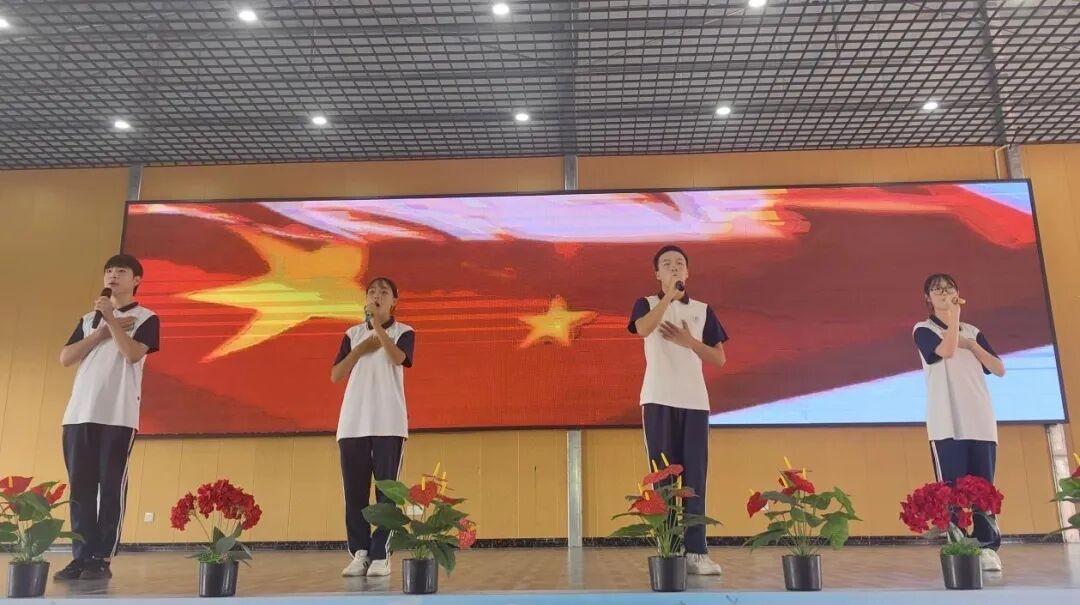 活动在雄壮的国歌声中拉开帷幕,全体师生肃立齐唱,歌声激昂,表达了深切爱国之情与崇高敬意。