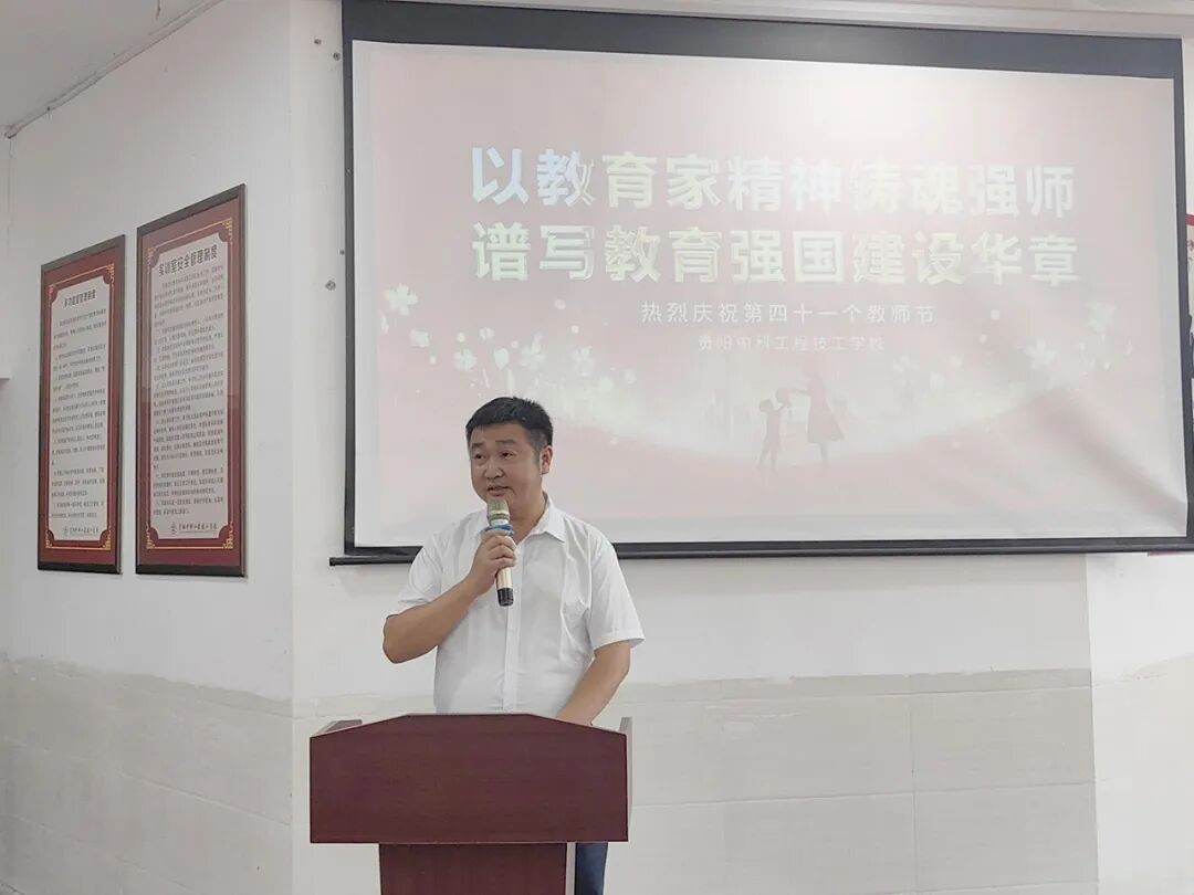 在第41个教师节来临之际,为弘扬尊师重教的优良传统,激励全体教师践行教育家精神,9月10日,我校全体教职工齐聚教学楼二楼会议室,隆重举行“以教育家精神铸魂强师,谱写教育强国建设华章”为主题的教师节主题活动。