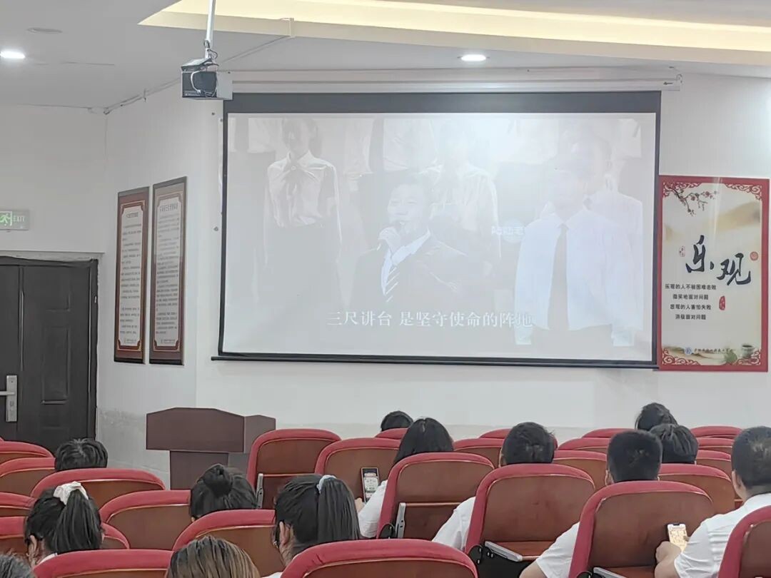 致辞结束后,全体教职工共同观看教师节诗歌朗诵一等奖作品《三尺讲台躬耕教坛》的精彩视频,该作品深情讴歌了教师平凡而伟大的奉献精神。