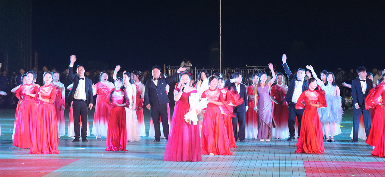 一首《我和我的祖国》引发全体大合唱,点燃会场热情,大家陶醉在深深的民族自豪感和爱国情怀中。紧接着,排练有序的文体节目轮番上演。