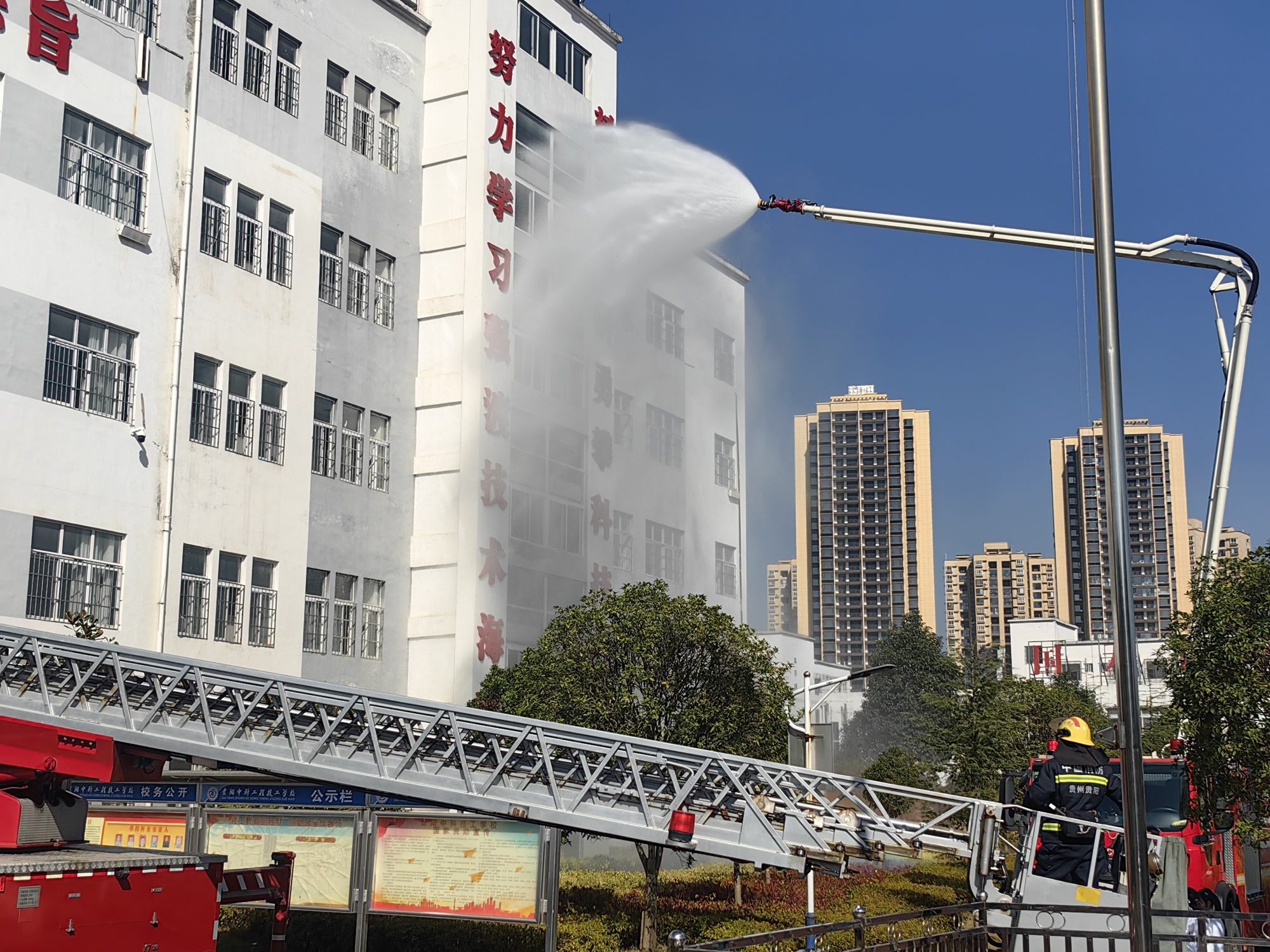 贵阳中科工程技工学校开展消防应急逃生演练