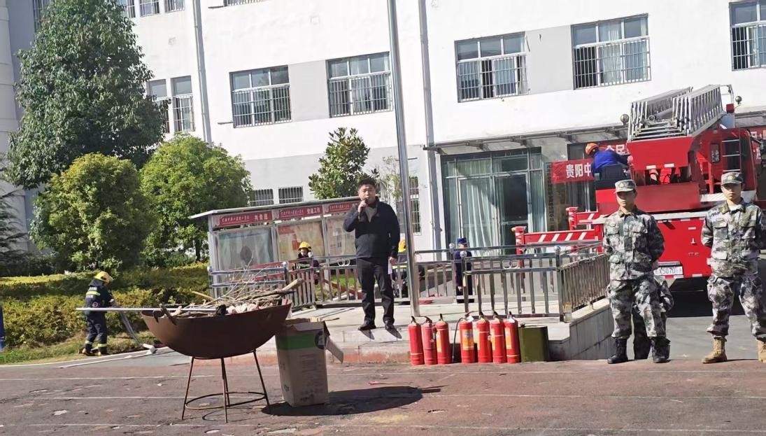 师生集结完毕后,修文县消防救援大队的消防队员随即开展消防安全实操培训。消防队员结合典型校园火灾案例,详细讲解了火灾成因、初期火灾扑救技巧及日常防火注意事项,并现场示范了干粉灭火器的“提、拔、握、压”使用方法。在消防队员的指导下,部分师生代表亲自上手操作灭火器,切实掌握了基本灭火技能,有效提升了应急处置的实战能力。