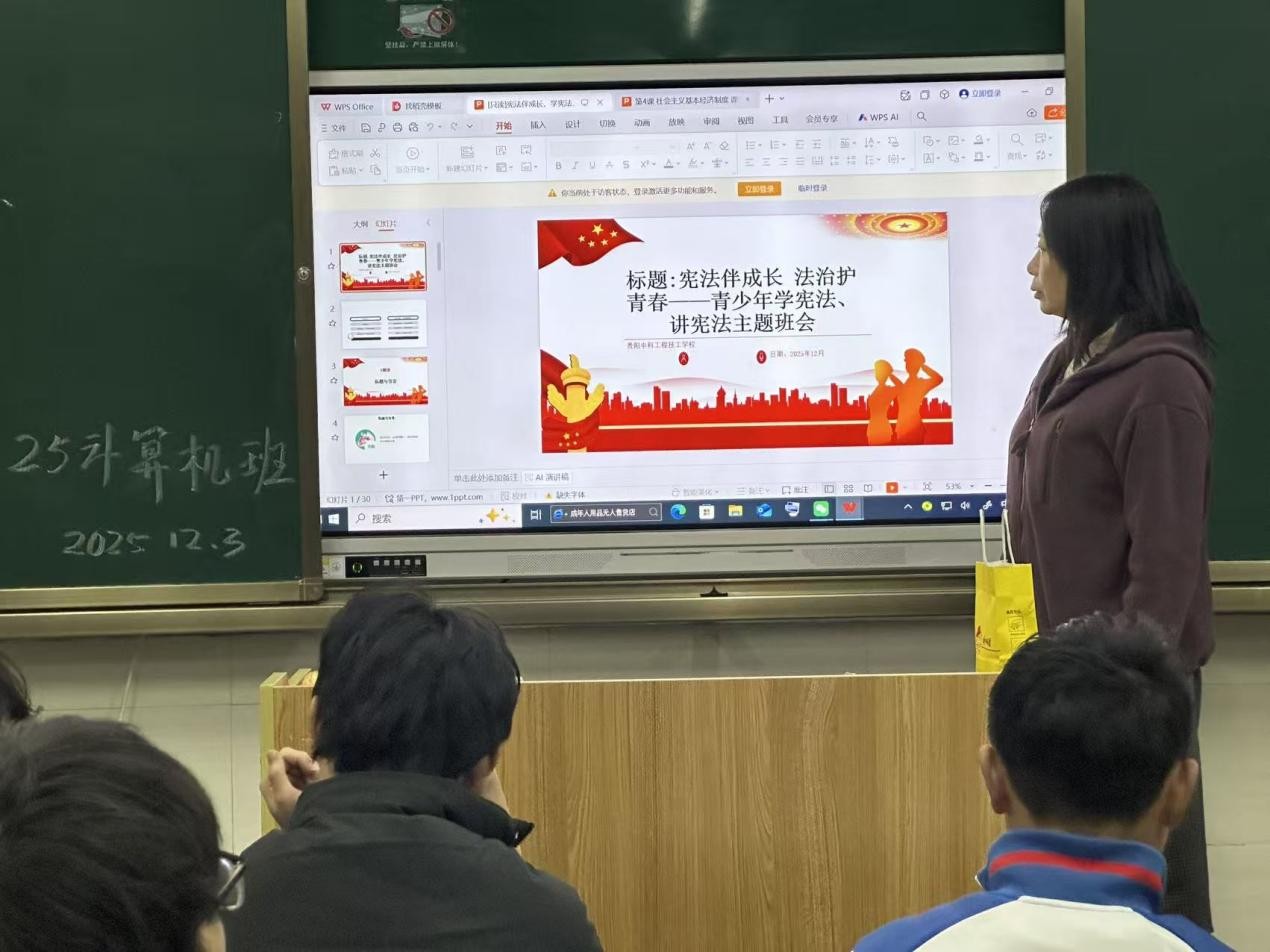 12月3日晚上,各班级分别召开了形式多样的“国家宪法日”主题班会。班会课上,班主任们通过课件讲解、案例分析、观看宣传片、小组讨论等多种形式,向学生们生动阐释了宪法的基本原则、核心内容以及公民的基本权利与义务。同学们围绕宪法与个人成长、校园生活、社会发展的关系展开了热烈讨论,进一步加深了对宪法精神的理解,明确了自觉守法、遇事找法、解决问题靠法的必要性。