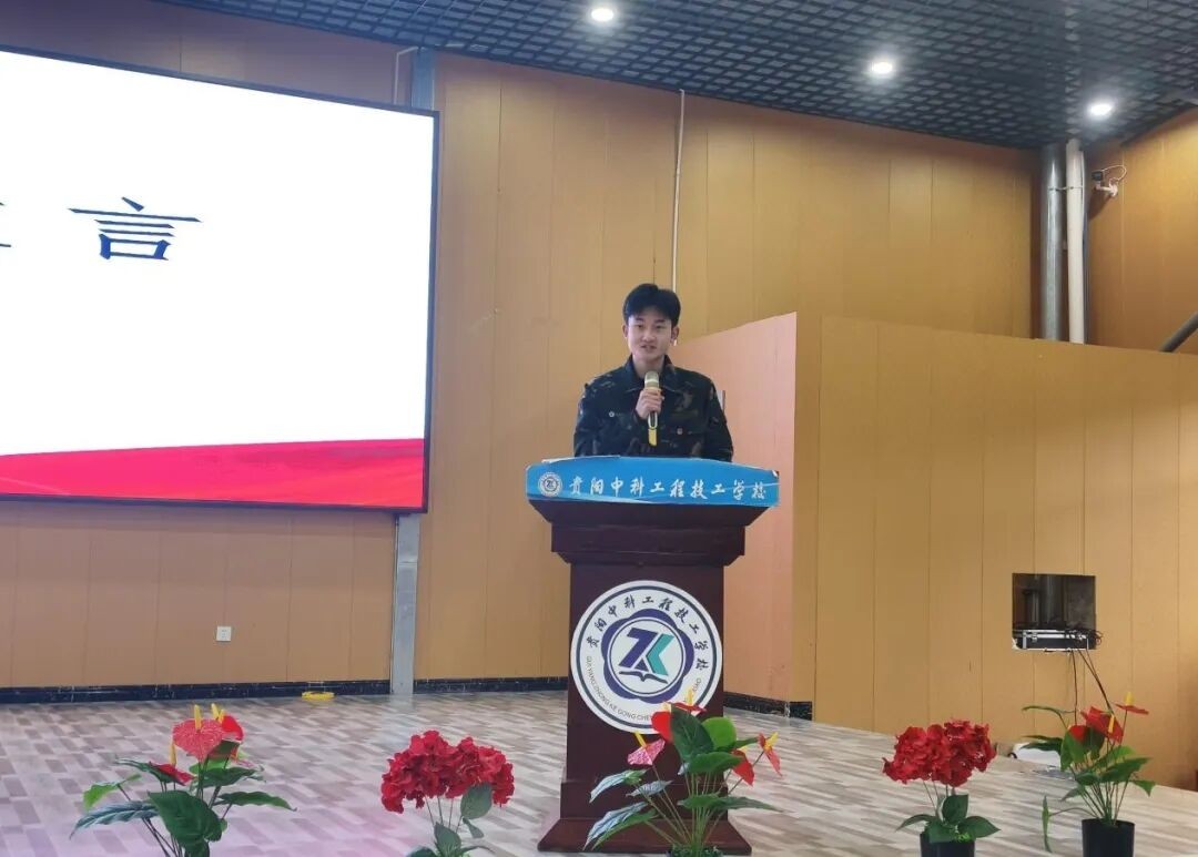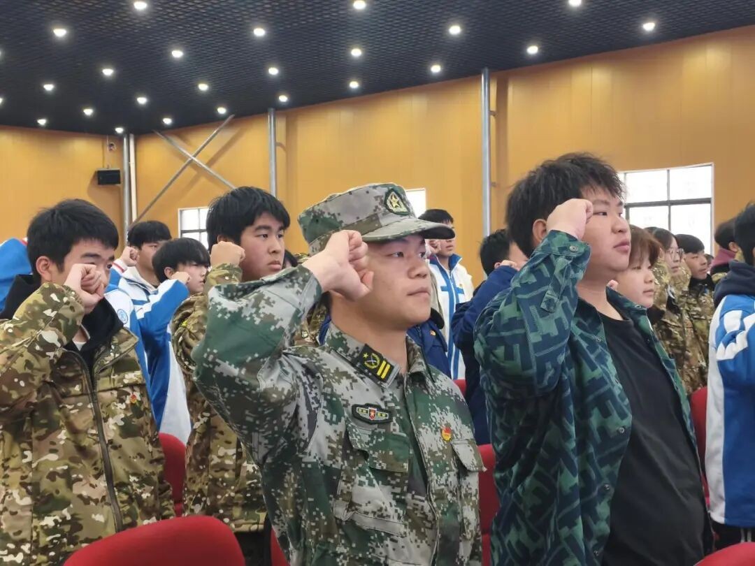 新团员代表李映汲同学郑重表态:“我们将以党员教师和老团员为榜样,深耕专业学习,夯实技能基础;主动融入学校国防教育体系,通过日常训练、理论学习筑牢国防素养;始终牢记团员使命,在学习生活中发挥模范带头作用,用实际行动践行‘请党放心,强国有我’的誓言。”