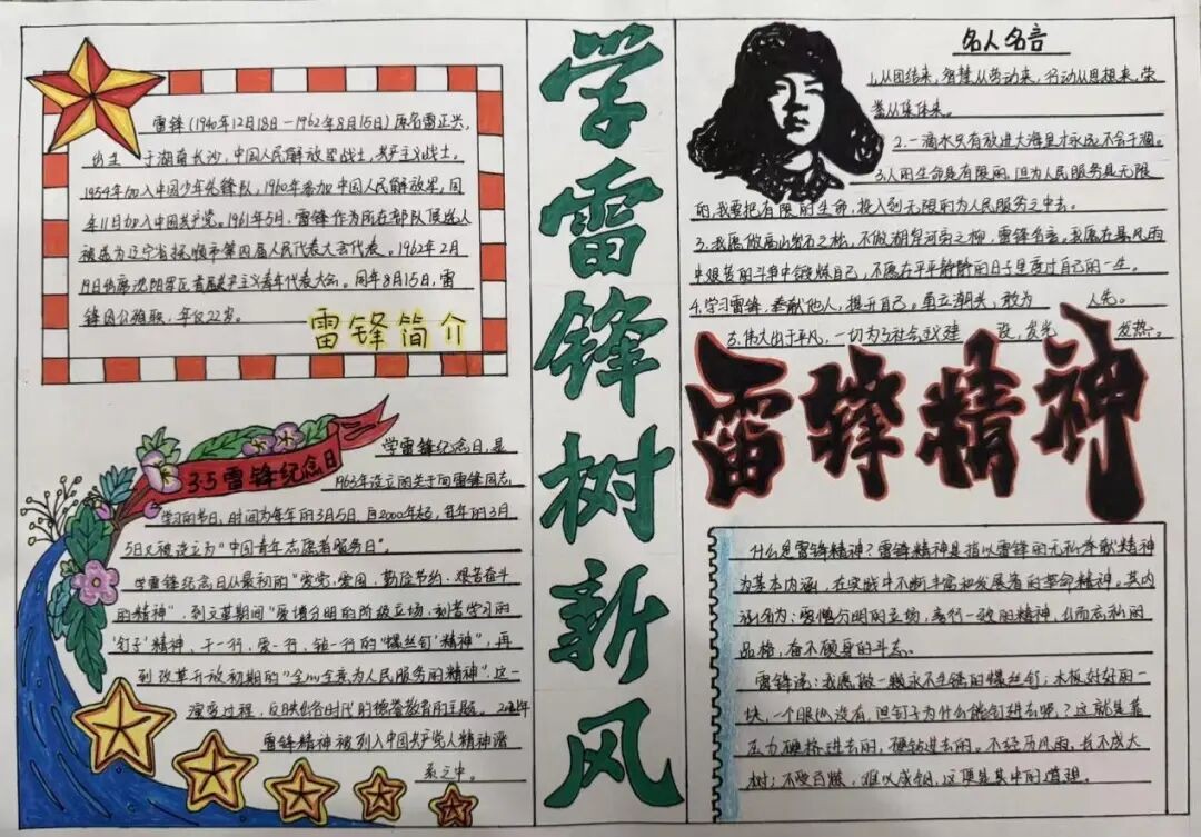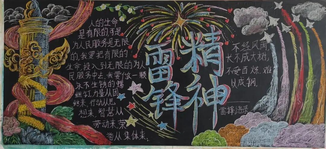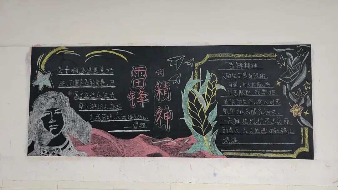 同期,各班打造“弘扬雷锋精神·争做时代新人”主题黑板报,以图文结合的形式,展现雷锋精神风貌,筑牢班级思想教育阵地。