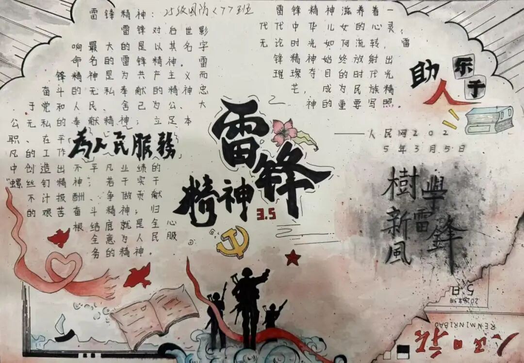 3月26日,组织“学习雷锋·树新风”手抄报创作活动,同学们以笔为媒、以画传情,用作品诠释雷锋精神,展现新时代学子文明向上的风貌。